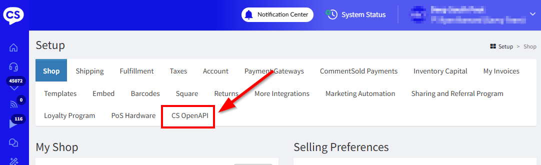 What to do if "CS OpenAPI" is not available for your shop Simply reach out to CS chat support and ask them to enable the "OpenAPI" for your shop and they should put your request in the queue. Once it is completed, the tab will automatically appear for you on your next login. |