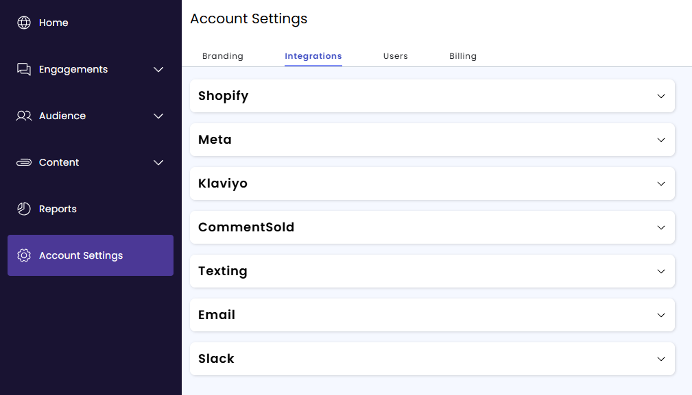 - Browse to "Account Settings", and then click on the "Integrations" tab.