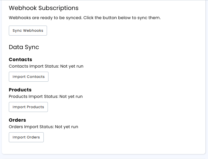 - Now you can start importing your data into SellSavvy from CommentSold. First, press the "Sync Webhooks" button.